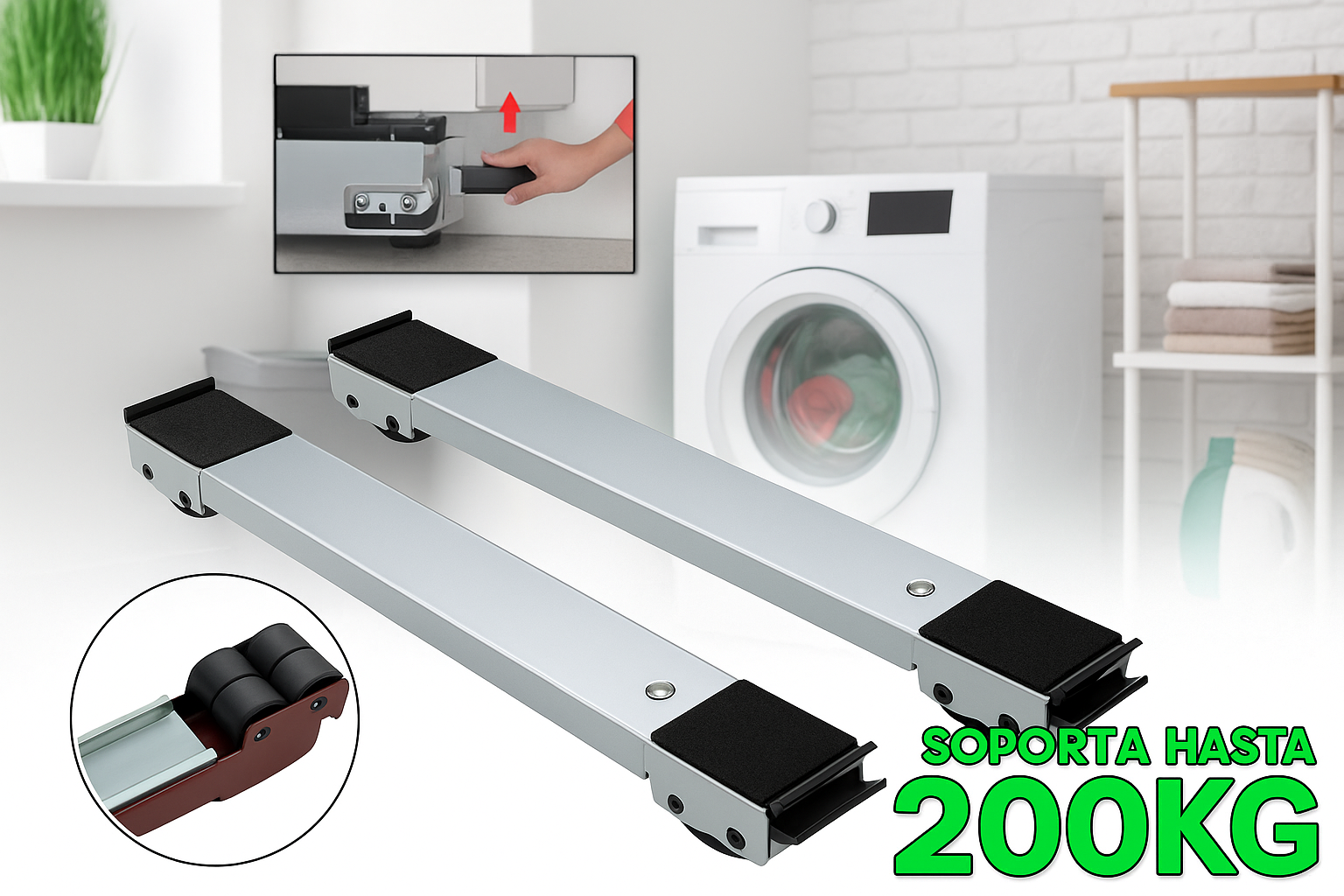 🛠️🌟 ¡No más pisos rayados ni dolores de espalda! Con la base de de soporte de DeslizaFácil 💪🏡 mueves tus electrodomésticos fácilmente, gracias a su base metálica y ruedas reforzadas con frenos de seguridad. Además, tendrás la libertad de reorganizar tu cocina o lavandería, refrescando el ambiente y dándole un aire nuevo a tu hogar. 🧹✨
