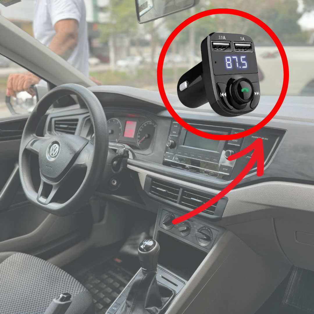 Este adaptador lo resuelve en segundos Solo conéctalo, sintoniza y listo. Disfruta de tu música, responde llamadas sin soltar el volante y mantén tu celular cargado.